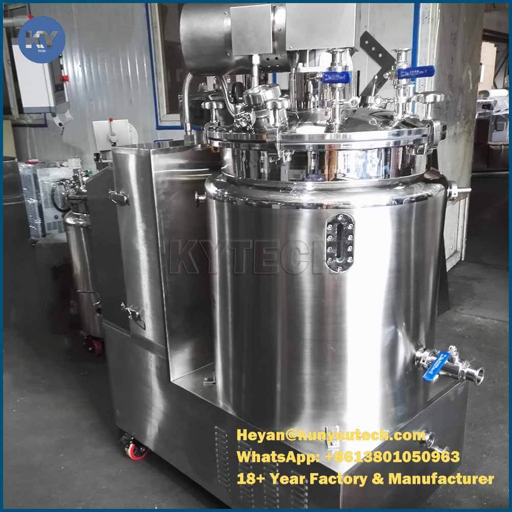 Le réservoir de fusion et de service de gélatine est utilisé pour faire fondre la gélatine et maintenir la masse de gélatine à une température souhaitée et alimenter la gélatine à la machine d'encapsulation. Nous avons à la fois un réservoir d'alimentation par gravité et un réservoir d'alimentation sous pression. La prise et la douille sont de qualité IP65, ce qui facilite le nettoyage du réservoir.