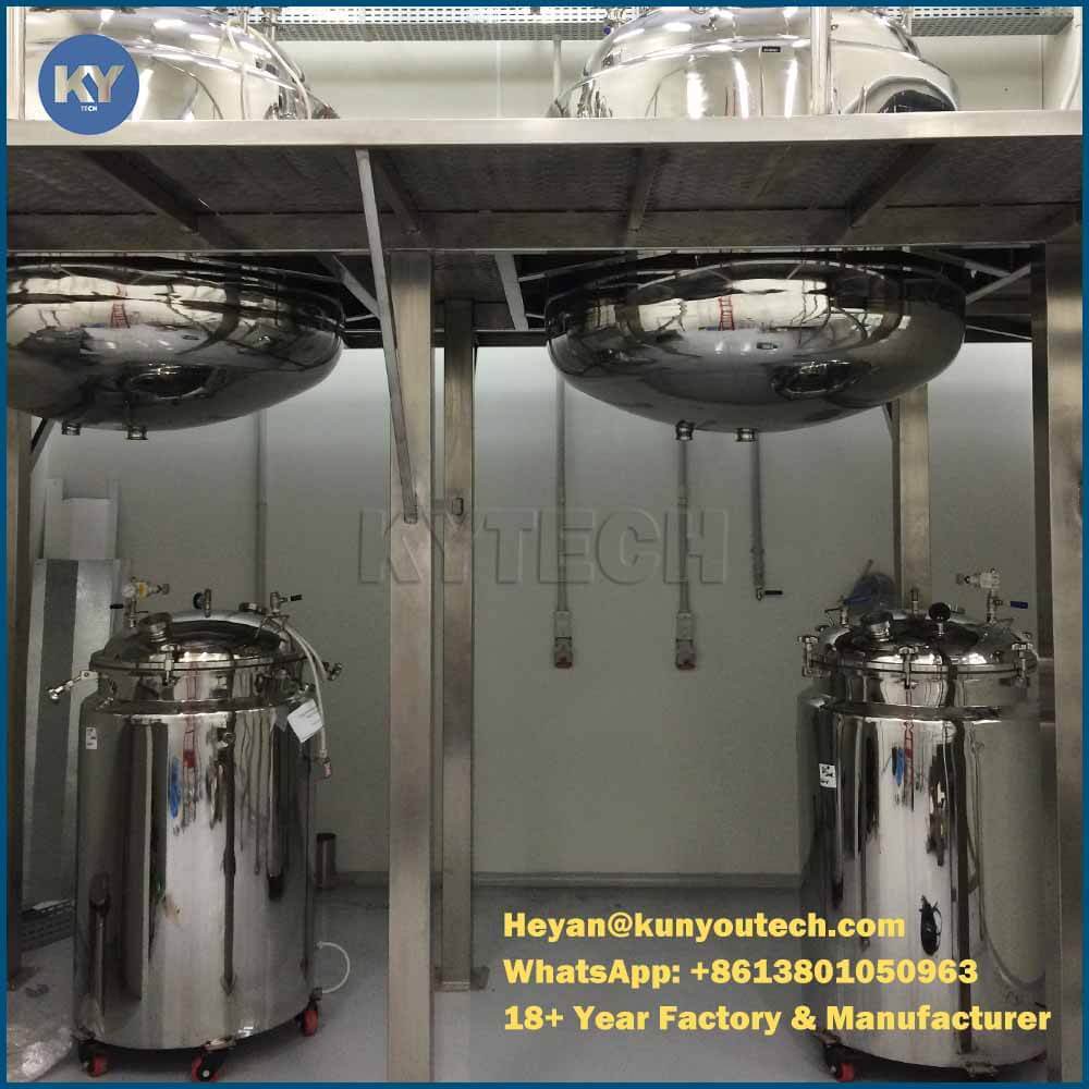 Le réservoir de gélatine de type bain-marie est un équipement spécial pour la fusion de la gélatine et le processus de production. Le réservoir de fusion de gélatine présente l'avantage d'une structure compacte, d'une transmission stable et de performances de fonctionnement stables. Le processus de mélange/agitation est opéré par couplage à boucle de connexion et est composé d'une pluralité d'agitateurs fendus avec une transmission stable et un meilleur effet d'homogénéisation. L'ensemble du corps du réservoir est en acier inoxydable. Le corps comprend trois couches, dont la chemise du réservoir, la chemise chauffante et la couche de conservation de la chaleur. Chauffer l'intérieur du réservoir avec de l'eau chaude en circulation, il se caractérisera par un chauffage rapide, de bonnes performances d'isolation thermique, l'amélioration de la qualité de la gélatine, l'accélération de la fusion de la gélatine et la réduction du temps de fusion. La chemise est totalement fermée avec de très bonnes performances sous vide. La bouche d'alimentation est pratique à assembler et à réparer. L'ensemble du réservoir est très lisse et brillant avec des caractéristiques de nettoyage pratique, anti-corrosion et anti-acide, etc. Le réservoir de fusion de gélatine adopte une construction en acier inoxydable pour l'ensemble de son corps. Pendant son processus de travail, la machine aspirera l'humidité de l'intérieur du réservoir, laissant le vide. Tout cela est conforme aux exigences des BPF. Le réservoir de fusion de gélatine est donc un équipement idéal pour la ligne pharmaceutique de capsules molles.