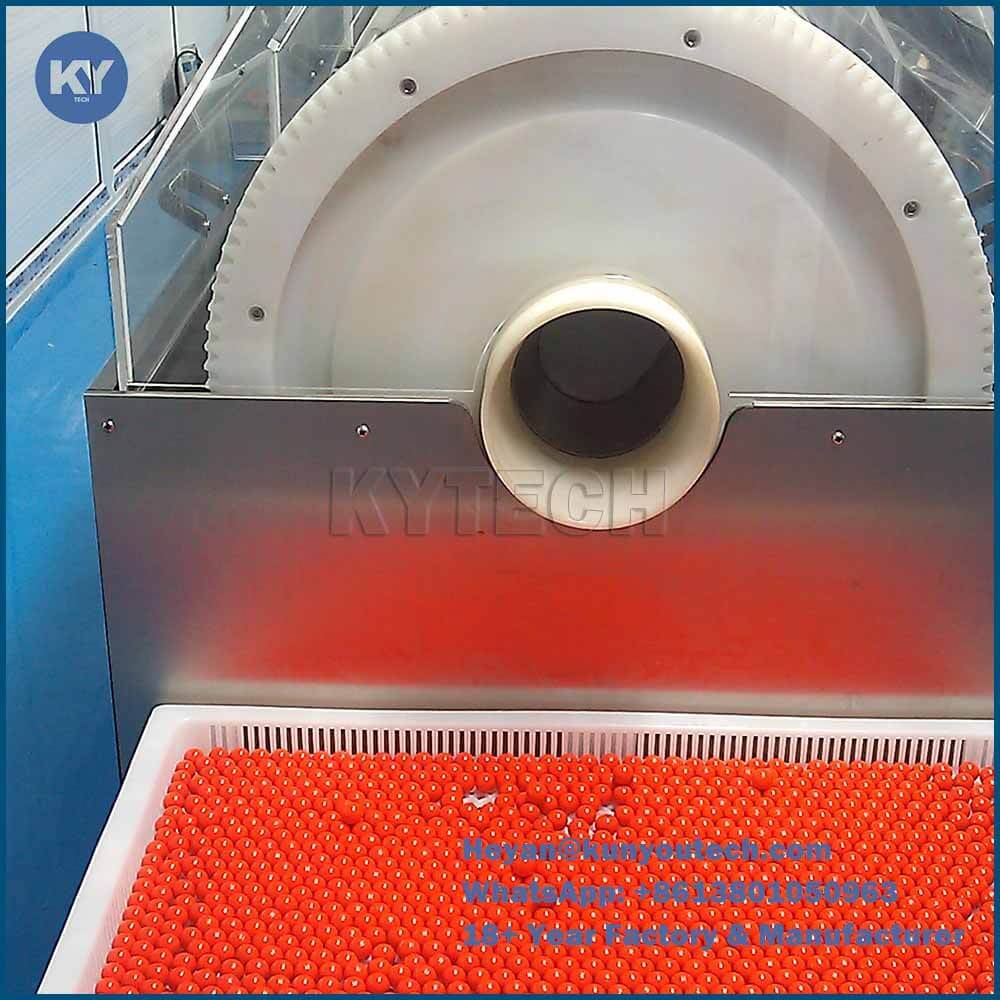 Beijing KUN YOU Pharmatech Co., Ltd est un fournisseur professionnel de machines de fabrication de gélules et de balles de peinture. Ce que nous fournissons est la ligne complète pour la fabrication de gélules et de balles de peinture, y compris le système de fusion de la gélatine, le système de remplissage, la machine d'encapsulation de gélules / balles de peinture, la machine de séchage à tambour rotatif.