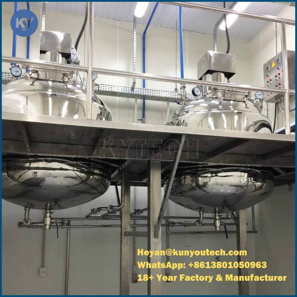 Le réservoir de service de gélatine est utilisé pour maintenir la masse de gélatine à la température souhaitée et alimenter la gélatine à la machine d'encapsulation. Nous avons à la fois un réservoir d'alimentation par gravité et un réservoir d'alimentation sous pression. La prise et la douille sont de qualité IP65, ce qui facilite le nettoyage du réservoir.